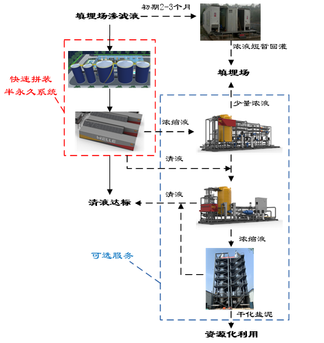 長短結合,在規劃得當的情況下,不僅解決了積存滲濾液的問題,又解決了新產生的滲濾液問題,從根本上解決了客戶近期和長期所面臨的問題;